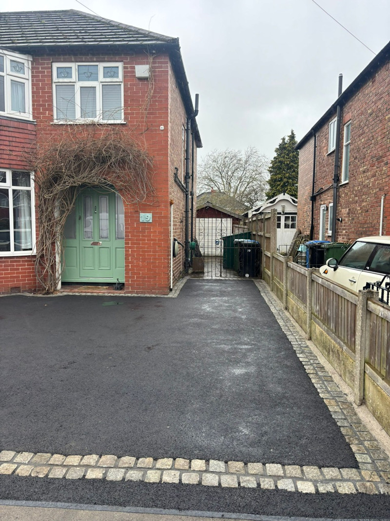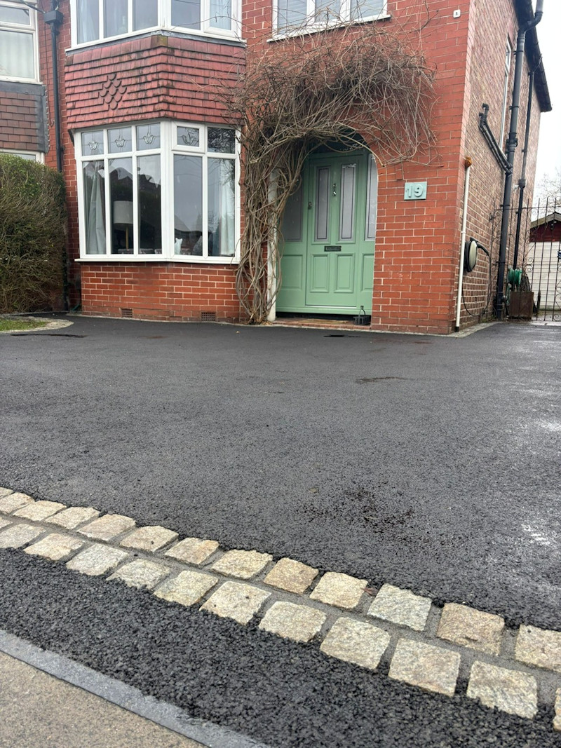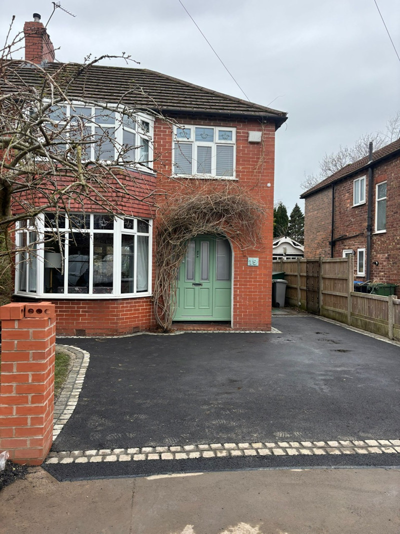 Out with the old and in with the new! That’s what some of our clients decided to do with their old driveway. They decided to get rid of their old, tired driveway, and replace it with a beautiful, new driveway in Sale, Manchester. They opted for a simple, fuss free look, choosing to combine tarmac with cobbles.